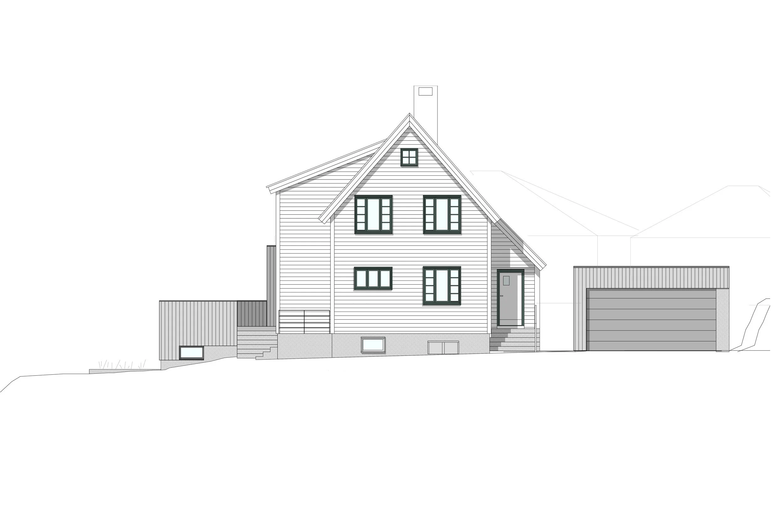 Eiendommen består av en eksisterende bolig i et område med småhusbebyggelse. Terrenget skråner fra veien og innkjørselen og ned not hagen på nedsiden. Prosjektet bestod av et tilbygg på siden som forbinder eksisterende første etasje med underetasjen og et nytt tilbygg på nedre nivå. På taket til den lavere delen er det en stor terrasse som har utgang direkte fra oppholdsrommene i den eksisterende første etasjen. Den nye lavere delen har utgang via skyvedører ut til hagens nedre nivå.